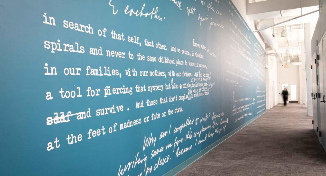 The feature wall in the Learning Commons, pictured above, is a reproduction from the Gloria Evangelina Anzaldúa Papers in the Benson Latin American Collection. We chose a piece about writing and revision to reflect one of the services in the Learning Commons. Anzaldúa was a queer Chicana theorist, feminist and creative writer from South Texas. To learn more, explore the UT Libraries resources by and about her.